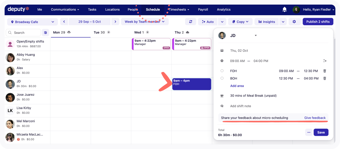 Your insights and feedback are very much appreciated, and if you have any feedback you'd like to provide, you can do so in the product by clicking the Give feedback link on the schedule tab of any micro-scheduled shift.