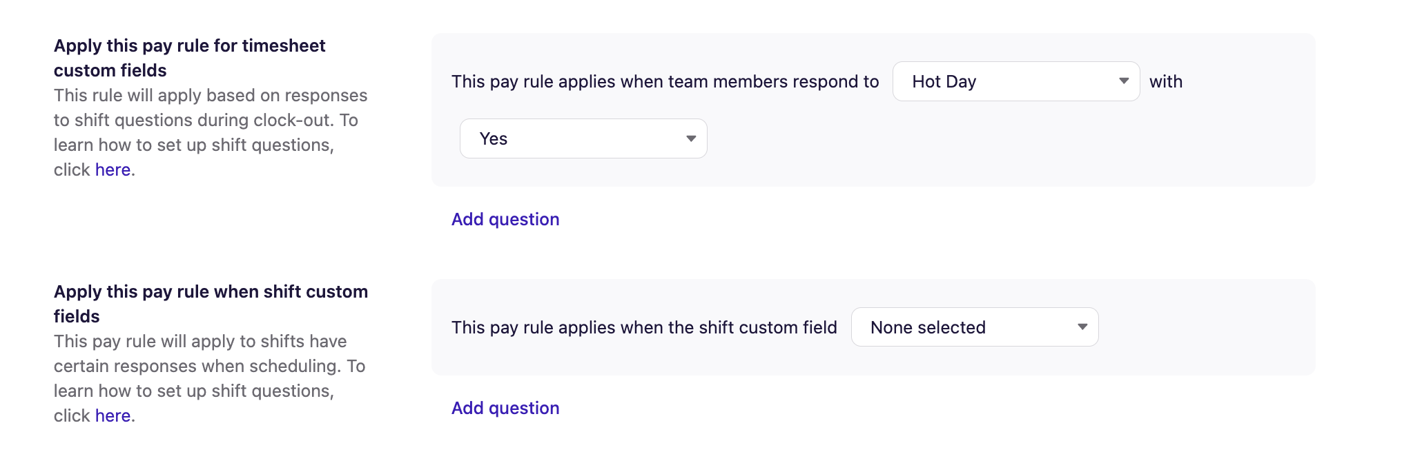 Once this is done, you can use the Shift Allowance type as in example 1. From here, in advanced settings you can select required answers in the timesheet and shift custom field answers.