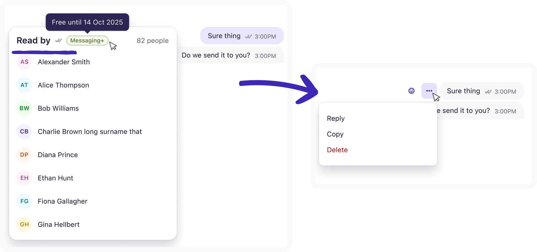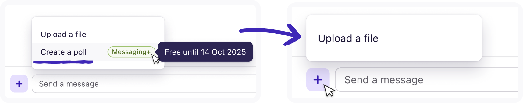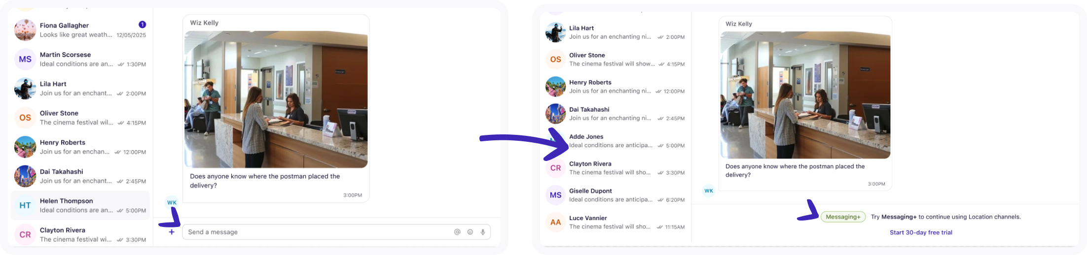 From October 14, teams without a Messaging+ add-on subscription may notice the following changes to their Messaging experience: