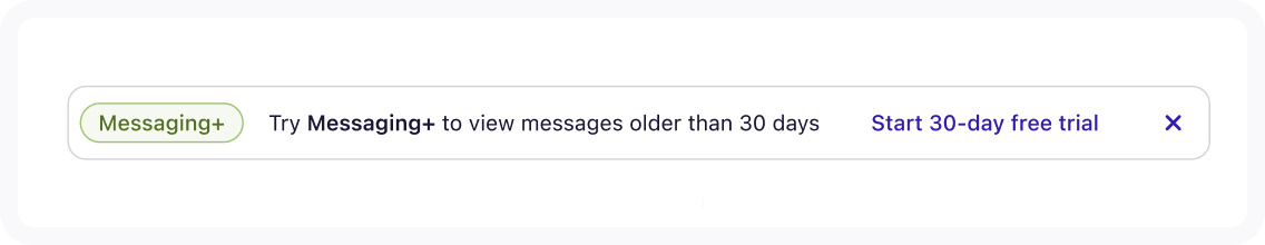 - Note: Customers on the Pro plan automatically get access to the Messaging+ add-on.