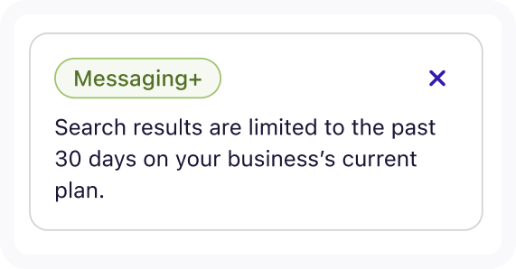 When searching messages, results will be limited to the last 30 days. For unrestricted search results, subscribe to Messaging+. |