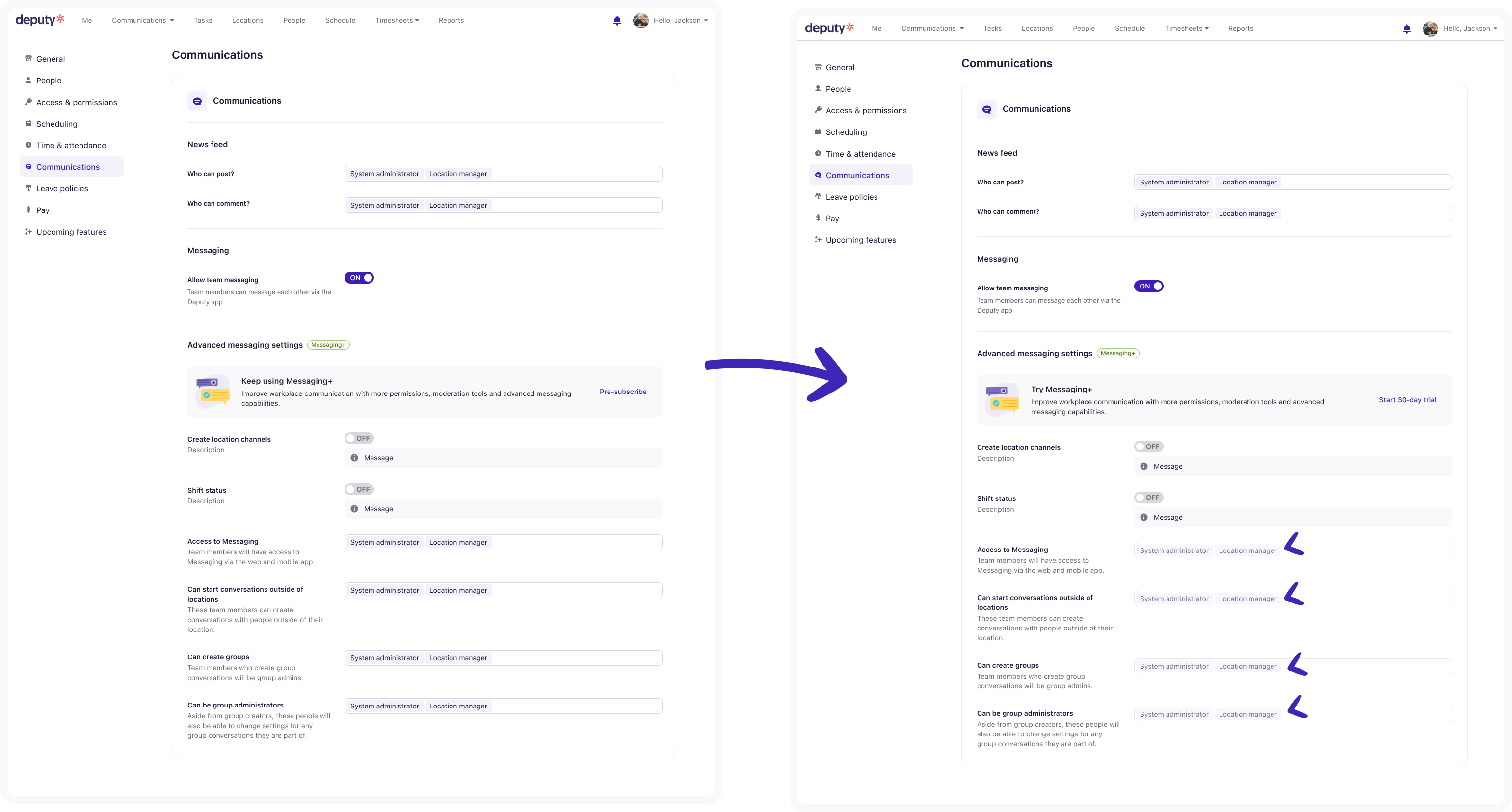 - Upgrade your Deputy plan with the Messaging+ add-on at any time via in-app self-serve at once.deputy.com, or speak to your Deputy sales contact or Customer Success Manager.