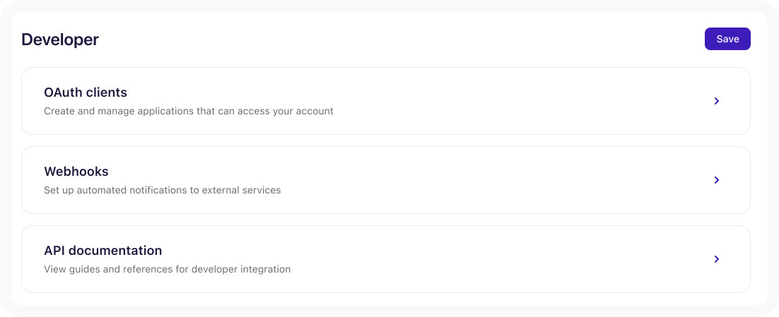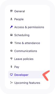 | The Developer tab is for advanced technical setup. It should only be used by developers, programmers, or those who work directly with them. Making changes without the proper knowledge can affect how your Deputy account connects with other systems. |