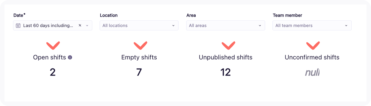 Use this report to view shift details in a list for easier review, filtering, and auditing.