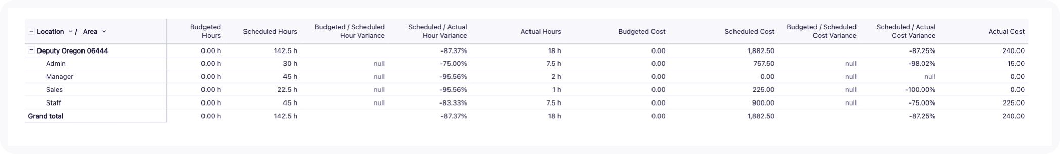 The Budgeted hours & costs report is one of the reports only available as part of Deputy Analytics+.