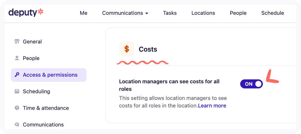 If turned OFF: Location Managers have restricted actions and cost visibility in Deputy, which means they: