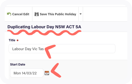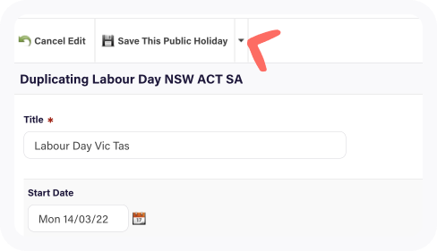 4. Once you’re happy with the changes you’ve made, click Save This Public Holiday.
