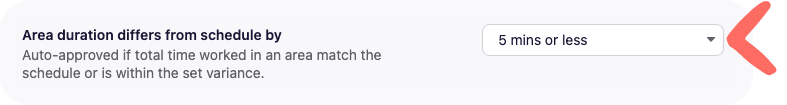 - If you select a time variance, auto-approval will be considered for timesheets where the start, finish, and/or total shift length time do not deviate more than the selected variance.