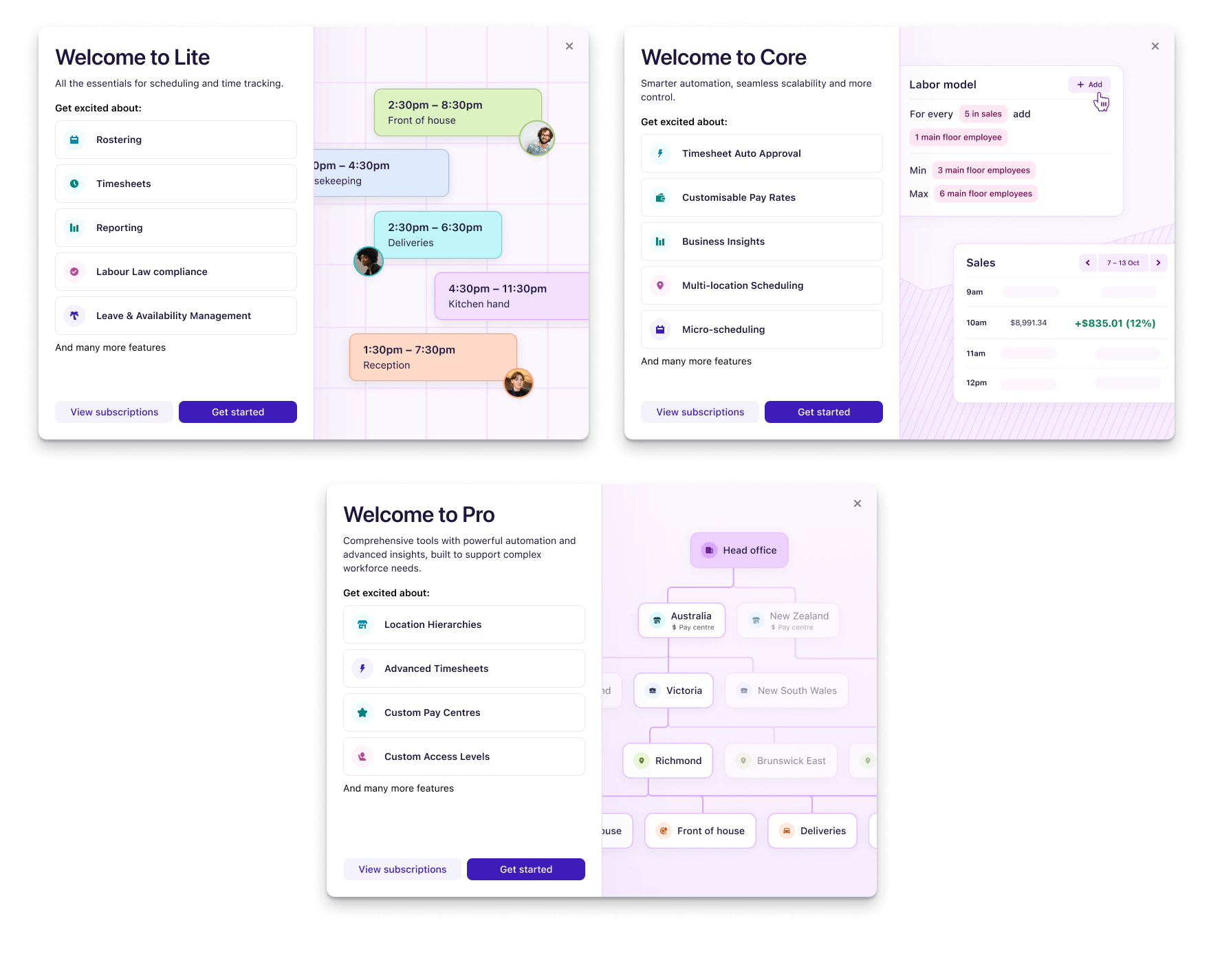 After you’ve explored Deputy with your free trial, the next step is to select the Plan and Add-ons that best match your team size, workflow, and business needs. Deputy offers a range of base plans - Lite, Core, and Pro - so you can choose the option that fits your team. Take a look at our Pricing Plans and Deputy Pricing page to compare features and decide which option is right for your business.