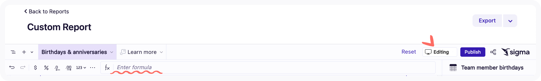 Note: Some customers have reported issues with using the in-built Sigma formula link in Analytics+. Use this link to view the Sigma function index by category to explore available functions.